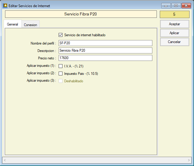 Inicialmente se define un nombre de perfil una descripción el precio del plan y en caso que se hayan declarado los impuestos asignarle el que corresponda.