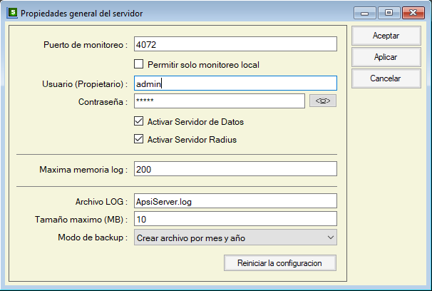 Estas son las opciones de configuración básica para iniciar con el funcionamiento del Servidor. A continuación se muestra los modo de iniciar.