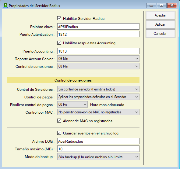 – La opcion «Accounting» es necesario para recibir el estado de las conexiones de cada usuarios como también la información de consumo de datos tiempo de conexión etc.