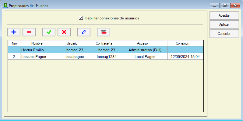 Puede habilitar los distintos usuarios para cada terminal y su nivel de acceso.